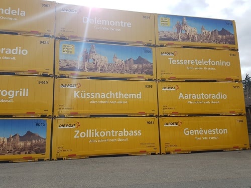 Container nach dem Vorbild der Schweizerischen Post.