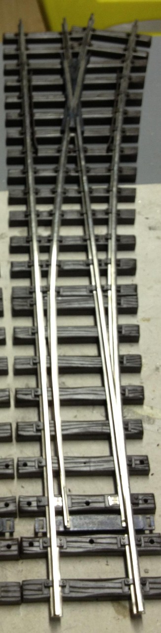 Innenbogenweiche rechts R5- R3 15 Grad mit Edelstahlgeleisprofil ohne Antrieb und ohne Schienenverbinder, Weichenzungen Messing vernickelt