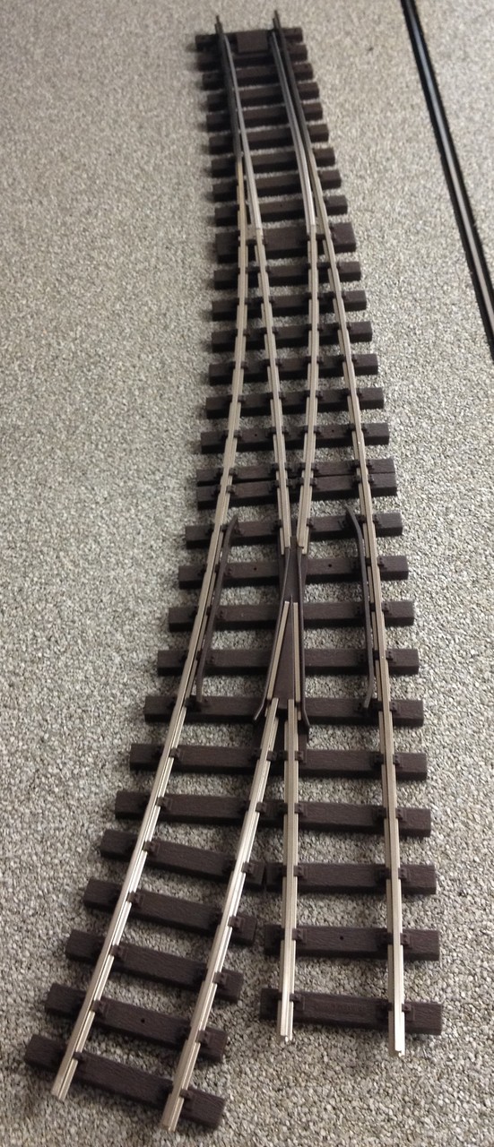 Weiche R5 rechts 15 Grad mit Edelstahlgeleisprofil ohne Antrieb und ohne